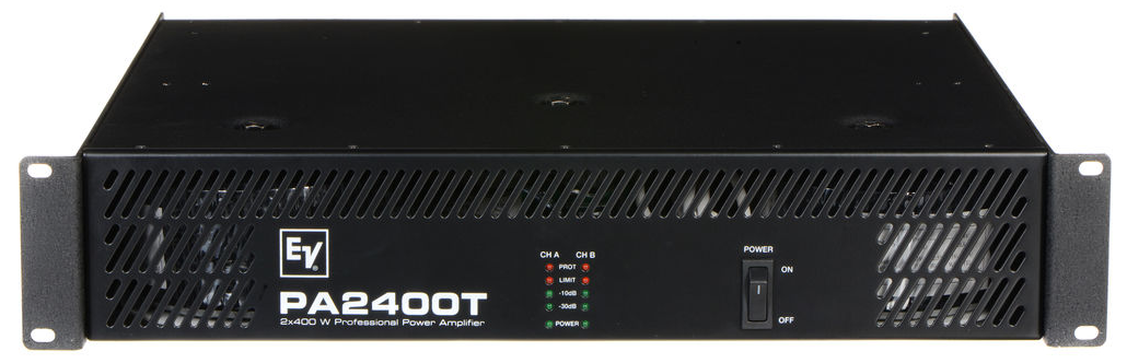 The Electro-Voice PA2400T is a professional-grade, rackmountable dual-channel power amplifier delivering 400 watts per channel. Designed for commercial audio installations, it supports 50V, 70V, and 100V distributed audio systems and provides reliable performance in demanding environments.