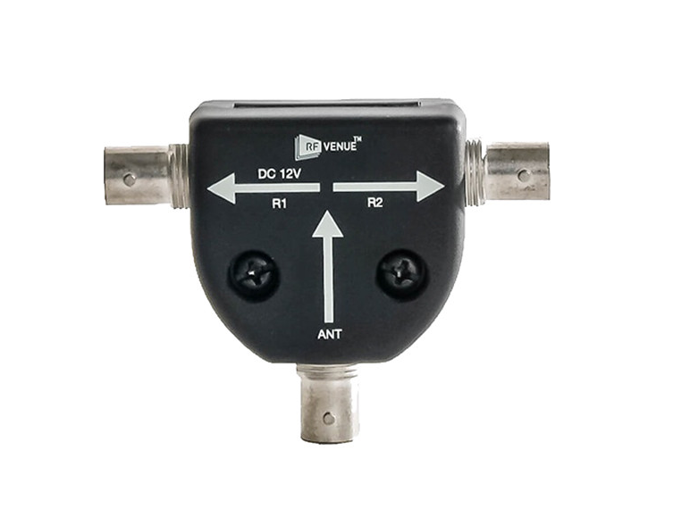 The RF Venue 2X1SPLIT is a high-quality passive RF splitter/combiner designed for wireless microphone and antenna distribution systems. It can be used to split a single signal into two outputs or combine two inputs into one, depending on application needs. With rugged construction and wideband performance, it is ideal for professional audio setups that demand reliability and flexibility in RF signal routing.